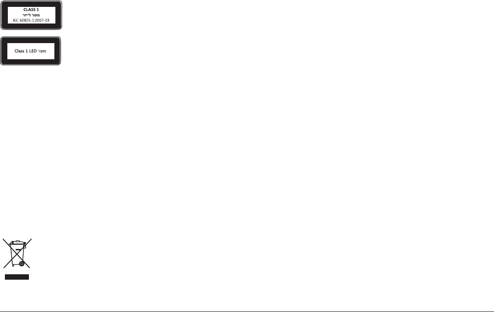 תובשחנה תוירונב שמתשמ הז רצומ .(IEC 60825-1:2001-08) and IEC 62471 (2006-07) ימואלניב ןקת םע המאתהל ךרעוה הז רצומ