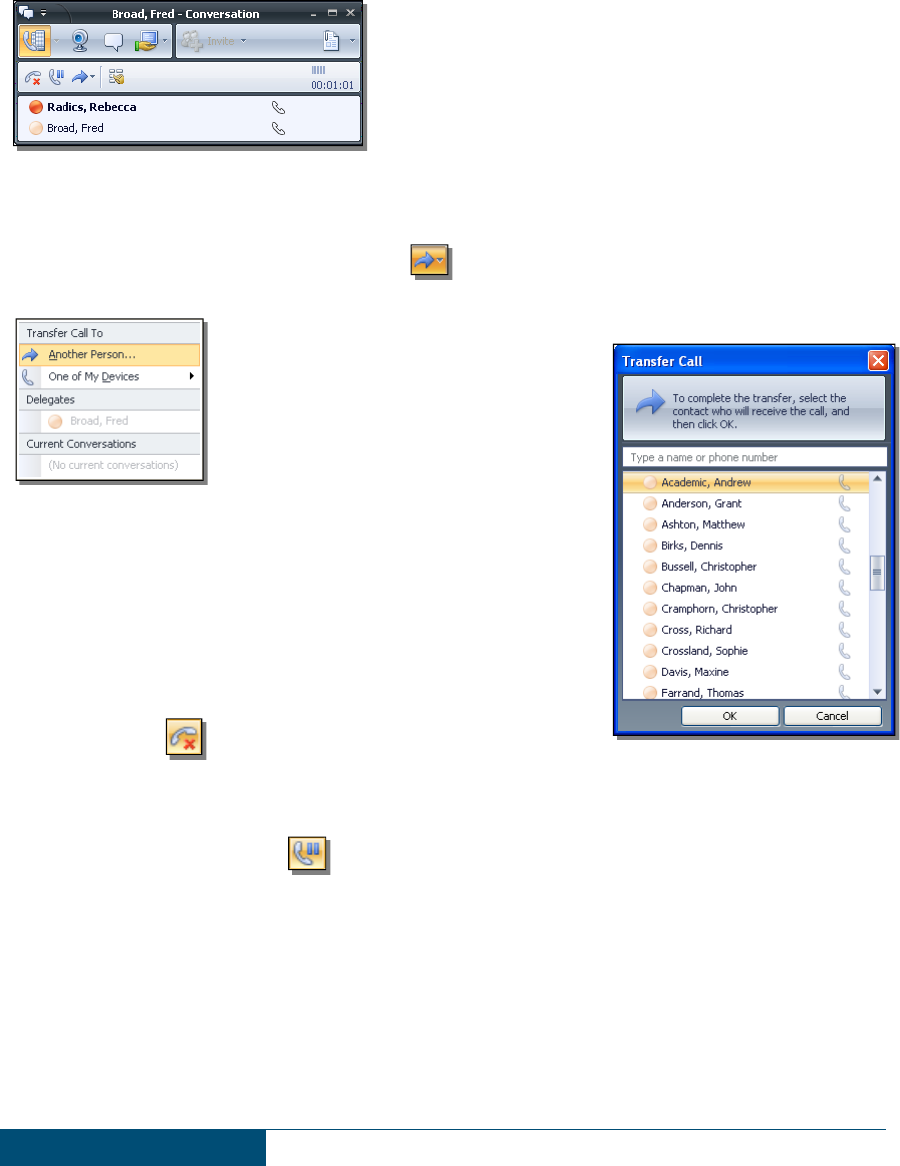 transfer a call to another user or phone, or mute a speaker or microphone.