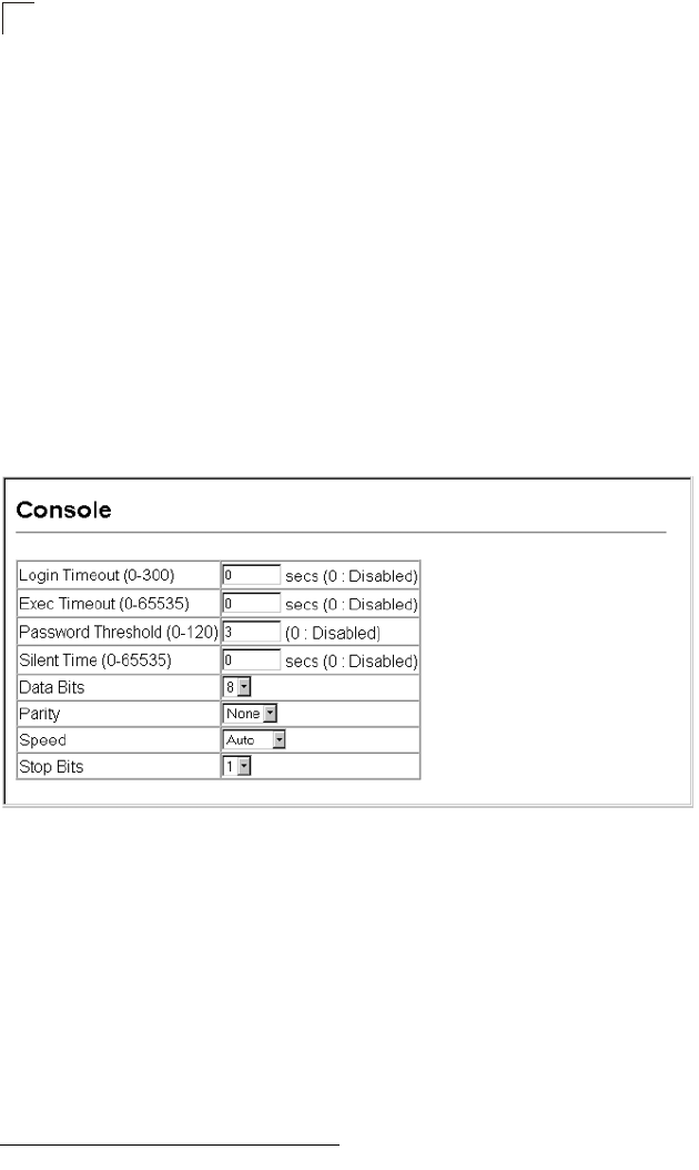 the serial port. (Range: 9600, 19200, 38400, 57600, or 115200 baud, Auto;